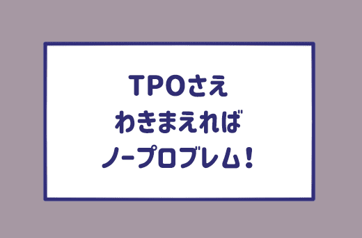 「TPOさえわきまえればノープロブレム!」です。