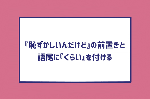 「『恥ずかしいんだけど』の前置き&語尾に『くらい』を付ける」です。
